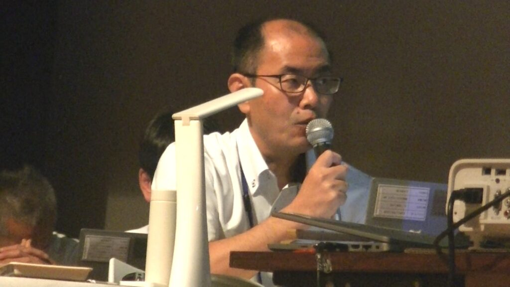 今本委員 長崎県の計算で怪しいのは粗度係数。河道の流れにくさを表す数値だが、長崎県は河口から1.3kmまでは0.030。1.3kmから上流を0.035と推定している。ところが1990年洪水の後、河川改修がなされ、現在粗度係数は劇的に低下しているはずである。例えば1.3kmまでは粗度係数0.020、1.3キロより上流は0.025だと仮定して計算すれば、水位は計画高水位を超えず、石木ダムは要らないという結果になる。ところが長崎県は、2021年洪水に対して、流量観測も痕跡調査もしていない。これは河川管理者として大失態で、昔で言えば切腹ものである。そのために石木ダムは要らないということは証明されていない。しかし、少なくとも要るということも証明されていない。要るか要らないかわからない状況で石木ダムを作ろうとしてる。技術者なら、本当は要らないということがわかっているはず。苦しい答弁するのはもうやめたらどうか?知事に間違った判断をさせないように腹をくくってやったらどうどうか?もしここで石木ダムに踏み切れば、あなた方が一生悔やみながら人生を送ることになる。ここで腹をくくらないと、負けることがデータ上はっきり分かっていながら開戦に踏み切り、結果惨敗したあの日本の開戦と同じことになる。やめませんか?楽になりましょうよ。(会場から大きな拍手)